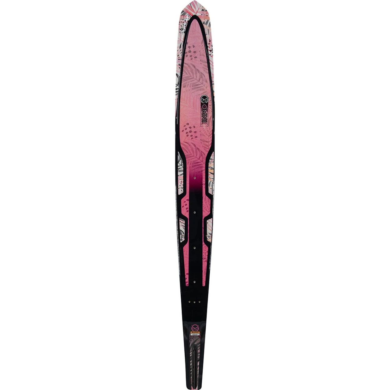 The OMNI waterski is optimized for the skier who needs one ski to do everything. Great behind virtually any watercraft on nearly any waterway, it’s wide platform provides easy deep-water starts, smooth-as-butter turns, stable wake crossings and endless fun on the water! Master your skills by progressing quickly with a ski that does it all! The Omni was designed with a Hybrid Waist Width, halfway between those typically found in traditional skis and those in wideride skis. This provides for smooth instinctive turns at a wide range of speeds. The Omni’s Continuous Rockerline executes intuitive turns with no paralleling while the Clean Edge Technology tail reduces drag 50% by allowing water to release cleanly off the bottom of the ski. This differs from conventional edges where water wraps around the bevel, up the sidewall and releases off the upper edge creating suction. The Clean Edge bevel-less tail offered in the Omni designs, Clean Edge 3.0, produces more acceleration with less skier input. In addition, we’ve enhanced stability by maintaining more bevel between the rear foot and fin. The result is a fast moving highly efficient ski with the handling required for tight line turns. A traditional Fiberglass Polyurethane core creates a stable and damp feel, extremely forgiving in variable water chop and less than ideal conditions. The Omni employs our Switchblade Fin System, with fin settings built into the ski permitting simple fin swapping with no guesswork. The Omni is equipped with the Asher Balance Fin, shaped by Champion waters skier Will Asher. It’s reduced fin length provides quick turn rotation combined with a new distribution of surface area for great cross course direction.